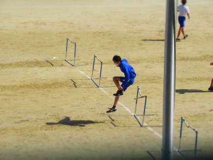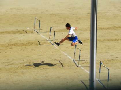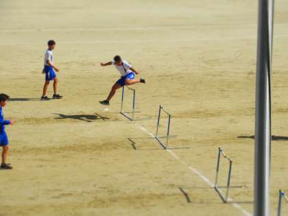 体育科の授業では,ハードル走にチャレンジしています。