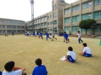 校区内各地に立つ職員と,自転車で校区内を巡回する職員と分かれて登校指導を実施。
