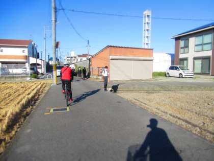 校区内各地に立つ職員と,自転車で校区内を巡回する職員と分かれて登校指導を実施。