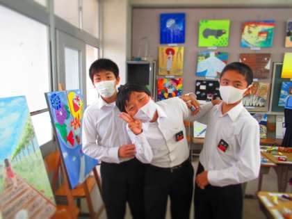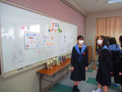 美術科,国語科,たけのこ学級や保健委員会などから作品を展示しています。