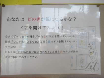 皆さんはどの色が気になるでしょうか? 気になる人はぜひ保健室前へ!