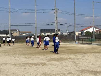 11/3(木) 本校に美原・八下中を招いて練習試合を行いました。両校とも、2年生が少なく1年生が多いという、本校と部員数のバランスがよく似たチームなので、実力をはかるうえではうってつけの相手といえます。午前中は各校2チームずつに分かれ、団体戦形式で対戦しました。