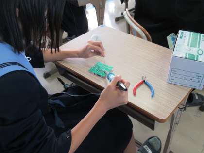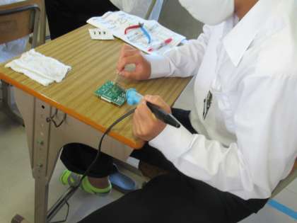 はんだ付けの実習中です。