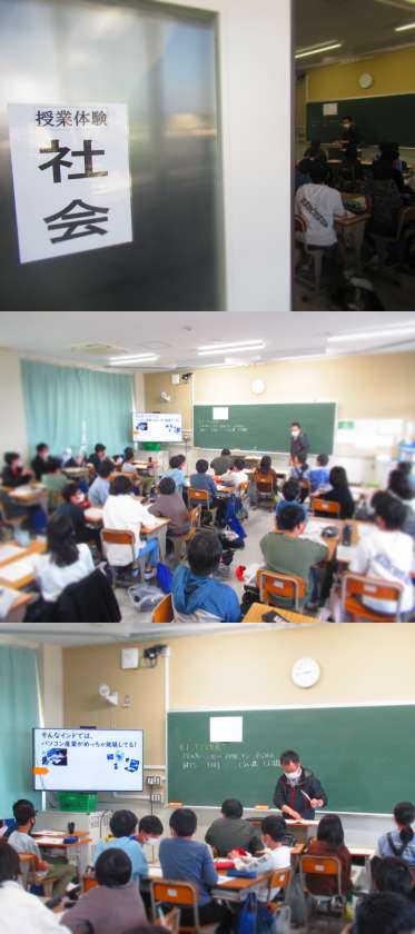 【写真上】国語科 【写真下】社会科 の授業体験です。