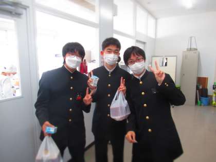 4限終了チャイムが鳴り終わるころには,給食を取りに生徒が配膳室を訪れます。