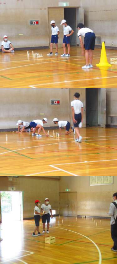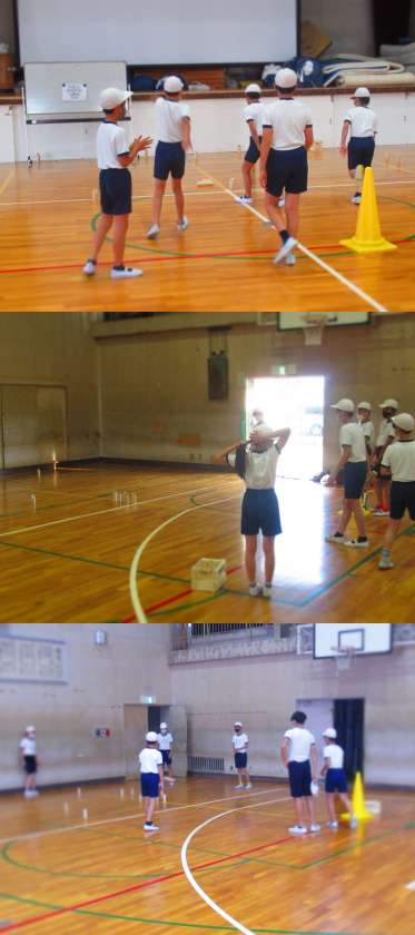保健体育Bの講座では,ニュースポーツ「モルック」に挑戦。