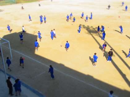 写真はお昼休み,グラウンドのようすです。 子どもにとって,寒いとか暑いとか関係ないようです。