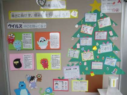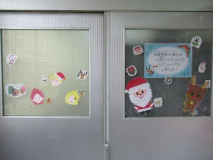 今月,保健室前はクリスマスモード! 是非皆さん,休み時間に見に来てください。