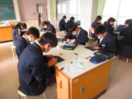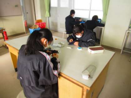 2年生は被服室で,ブックカバーづくりに励んでいます。