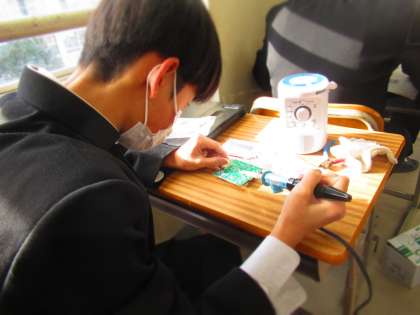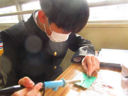 途中,はんだづけをする場面があり,その作業中はみな「全集中」で取り組んでいます。