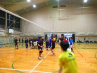 写真は,19日木曜日の放課後に金岡小学校体育館で練習する男子バレーボール部です。