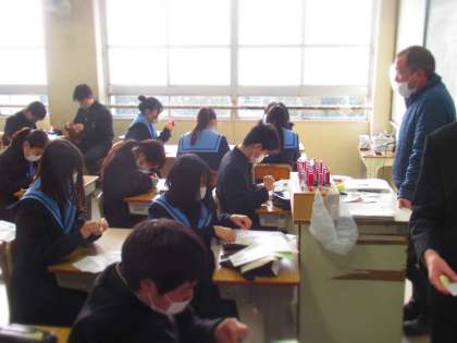 3年生家庭科の授業では,裁縫にチャレンジしています。