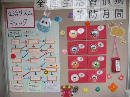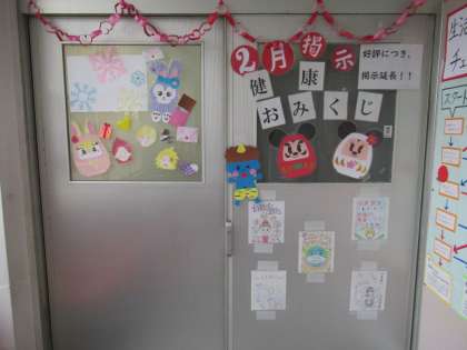 保健室前の掲示が2月バージョンになっています。 おみくじをひいたら,「4番」が出ました! 4番を開けると・・・