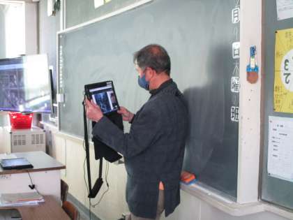 教室側の様子は、タブレットを通してひめゆり平和記念資料館にも伝えられました。