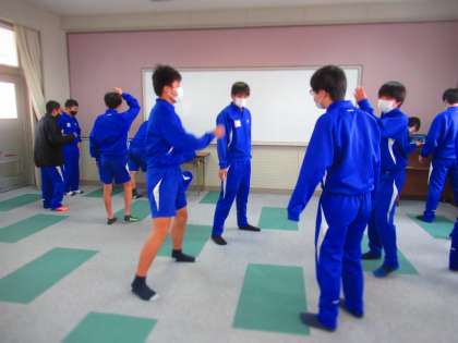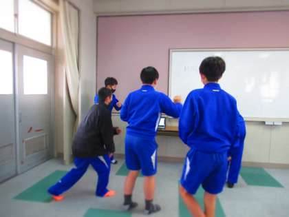 2年生、振り付けを考えサンプルを見ながら覚えています。