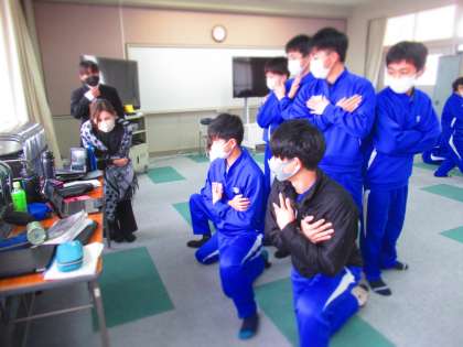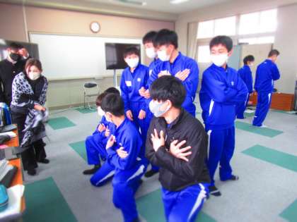 班のメンバーと協力しながら。 そして、担任の先生も心配で見に来ています。