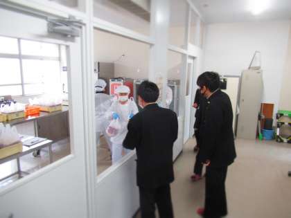 配膳室へ取りに来る生徒。