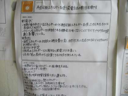 「エネルギーをみんなに そしてクリーンに」についてまとめ,学年の階段に掲示しています。