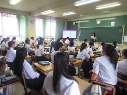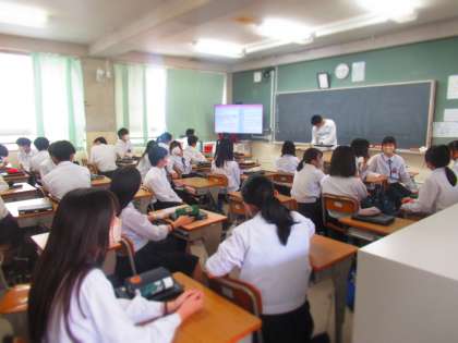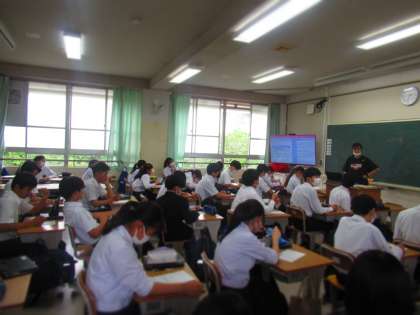 6日(火)6限、自然体験活動の説明を聞く生徒。