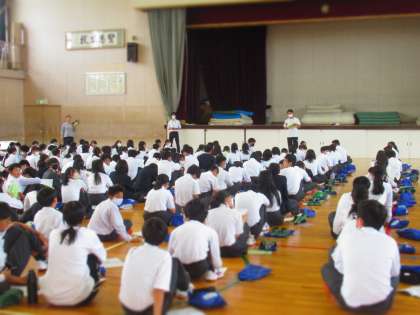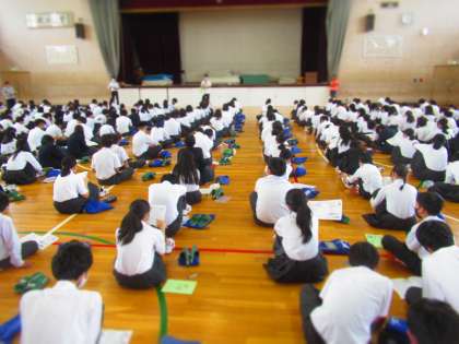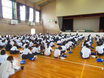 2年生は23日(金)、校外学習の事前指導を体育館で行いました。