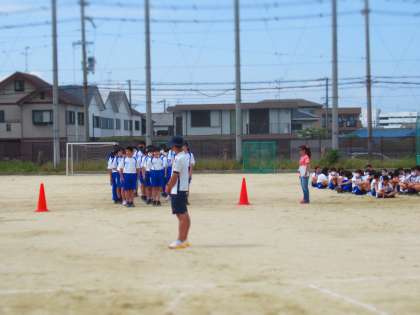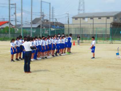 23日(金)6限、1年生はグラウンドでクラスマッチのリハーサルを敢行。