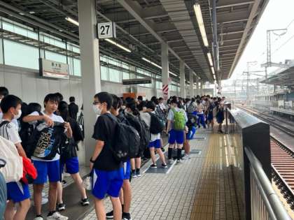 新大阪駅で新幹線を待っています。
