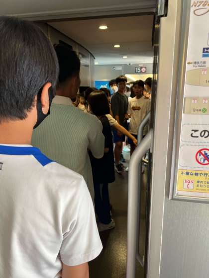 あと、20分ほどで静岡駅に到着です。トイレ待ち渋滞です。