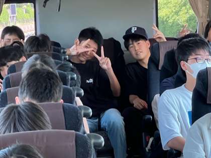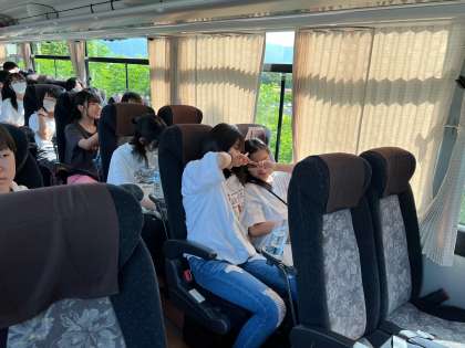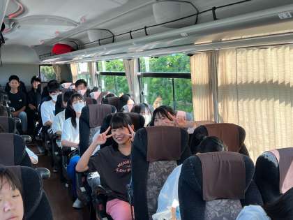 バスの中です。ディズニーに備えてエネルギー充填しています。