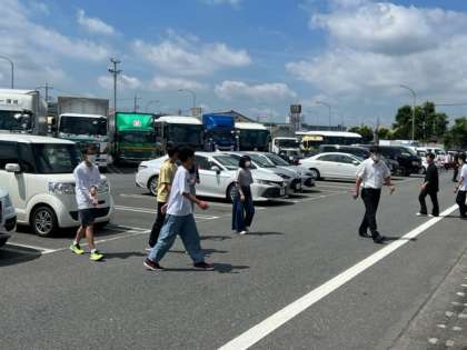 出発です。校長先生のモノマネで巽くんが、挨拶しました。