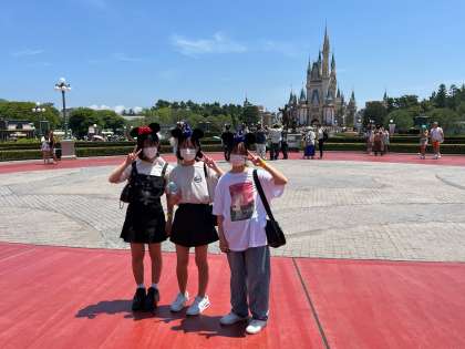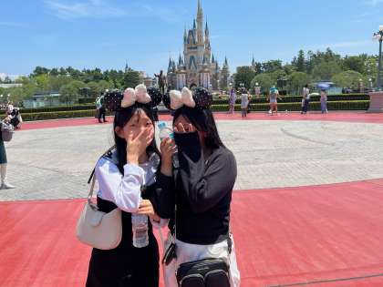 シンデレラ城をバックに