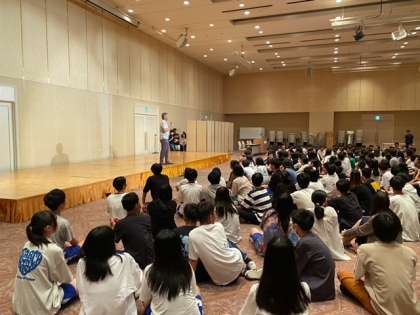 修学旅行旅行1日めの夜。 レクレーション大会で大盛り上がり。