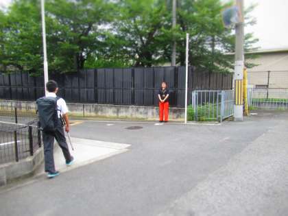 【写真下】体育館裏  での登校指導。
