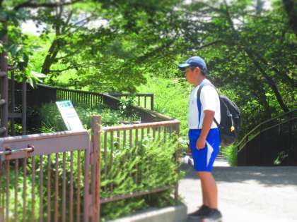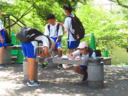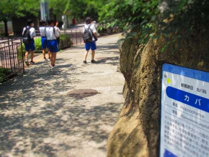【写真下】カバが水の中から出てこず次の場所へ向かう生徒