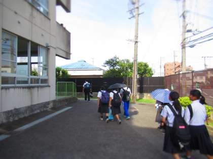 朝の登校風景です。 今日は、金曜日の1から6の時間割です。 月曜日は、全学年4時間授業です。