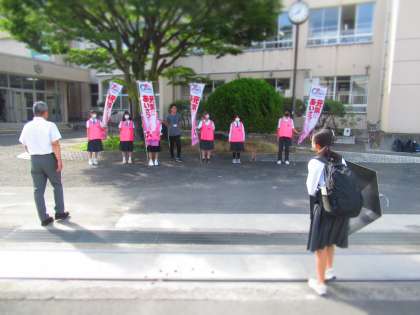 生徒会主催のあいさつ運動を七夕の朝に実施。