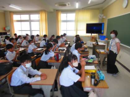 続いては、大阪府警察からの音声データを教室で聞きました。