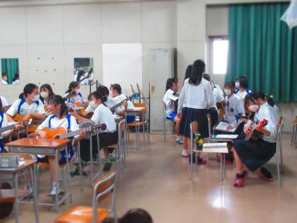 【写真上】ギター部 【写真下】文芸部