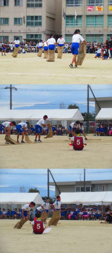 最後のぴょんぴょん跳ねるところで勢い余って、また焦ってしまって転倒してしまう生徒も。