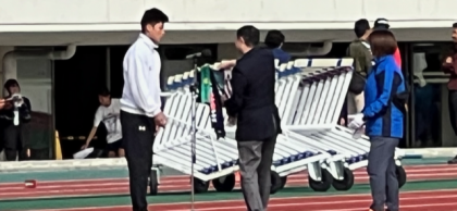 10月7日、万博記念競技場で大阪中学校総合体育大会の陸上競技の部が始まりました。昨年度は、男女総合優勝をしましたので盾の返還、泉北地区予選会を勝ち抜いた選手たちが競技を競います。