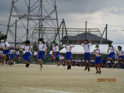 この人数で縄跳びをするのは大変ですね。学年が上がるごとに回数が増えていきます。