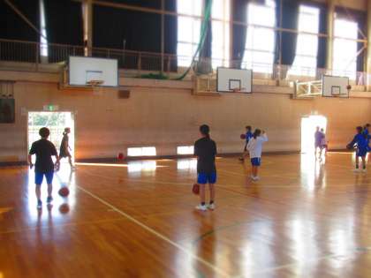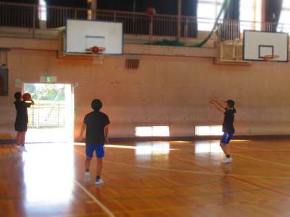 女子バスケットボール部の朝練習です。