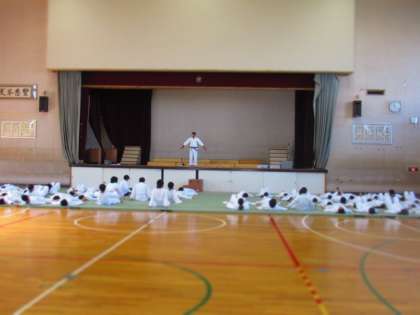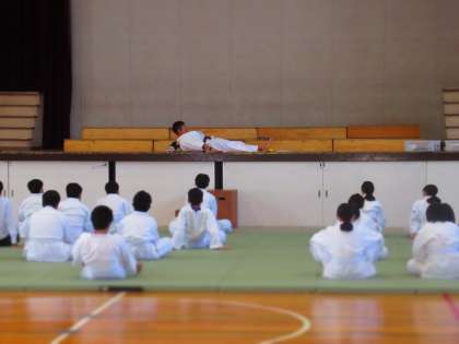 頭など大切な部分を守るため、受け身の練習をします。