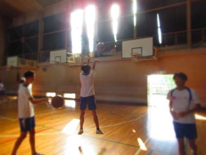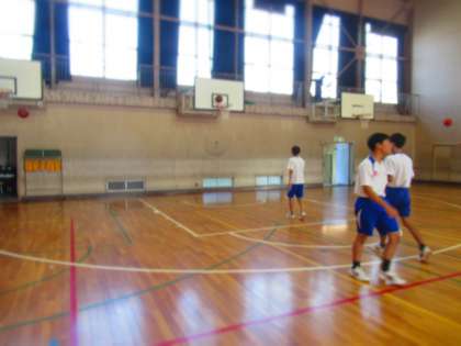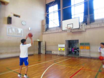 3年生男子、体育(バスケットボール)の授業です。