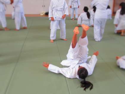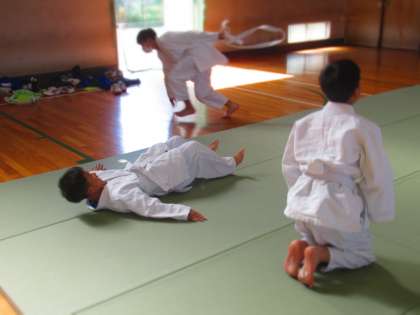 この日は、立位からの後ろ受け身の練習をしていました。