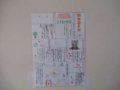 1年生廊下には、展示見学で並んでいた校外学習調べ学習の新聞が飾られています。