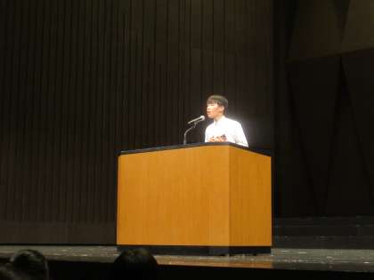 2023年 文化活動発表会【その8】 公開日 2023/10/25 更新日 2023/10/25 行事関係 英語暗唱です。 先日行われた堺市英語暗唱大会で優秀賞を受賞したスピーチには、会場の誰もが聞き入っていました。