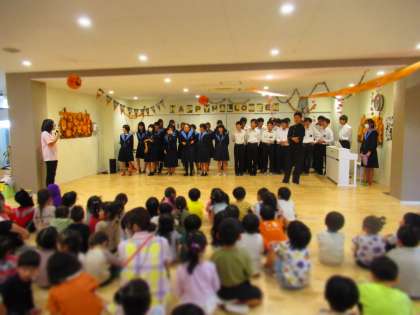 近隣の保育園より最近中学校から聴こえるきれいな歌声を園児にも聴かせたいという相談があり、本日3年6組の皆さんが合唱曲を披露してきました。