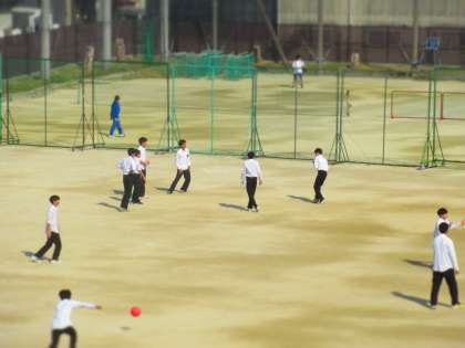 25日は、1年生、3年生の生徒がボール遊びをしにグラウンドへ出ています。