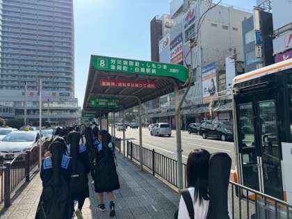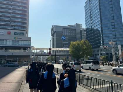 ギター部は11月2日、堺市中学校連合音楽会に出演するため、電車で会場のフェニーチェ堺をめざしました。