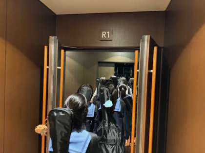 会場に着いてからはまず、舞台裏にギターを置きました。